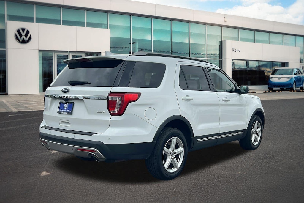 Ford Explorer XLT 4x4 2017 en color Oxford White, con cambio automático de 6 velocidades y Select-Shift, motor de 3,5 litros, 6 cilindros, SMPI, DOHC y tracción 4x4.