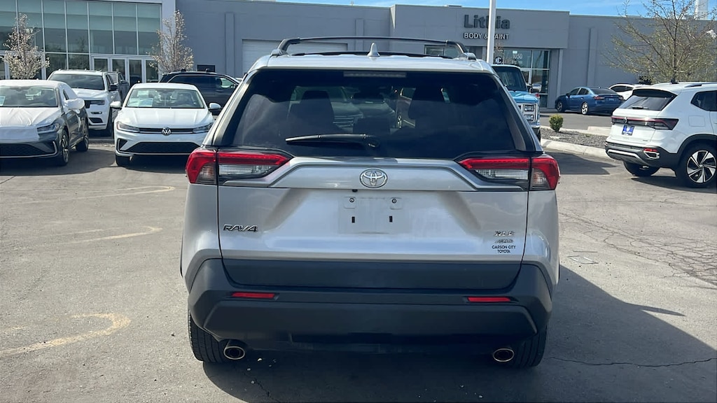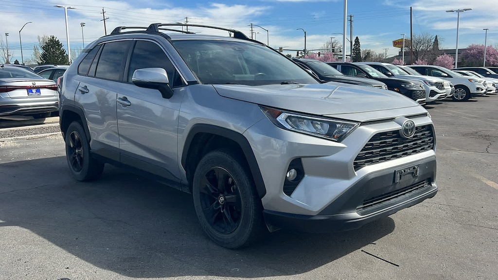 Toyota RAV4 XLE AWD 2020, color Silver Sky Metallic, cambio automático de 8 velocidades, motor de 2,5 litros, 4 cilindros, DOHC, Dual VVT-i y tracción total (AWD), tapicería de tela gris claro.